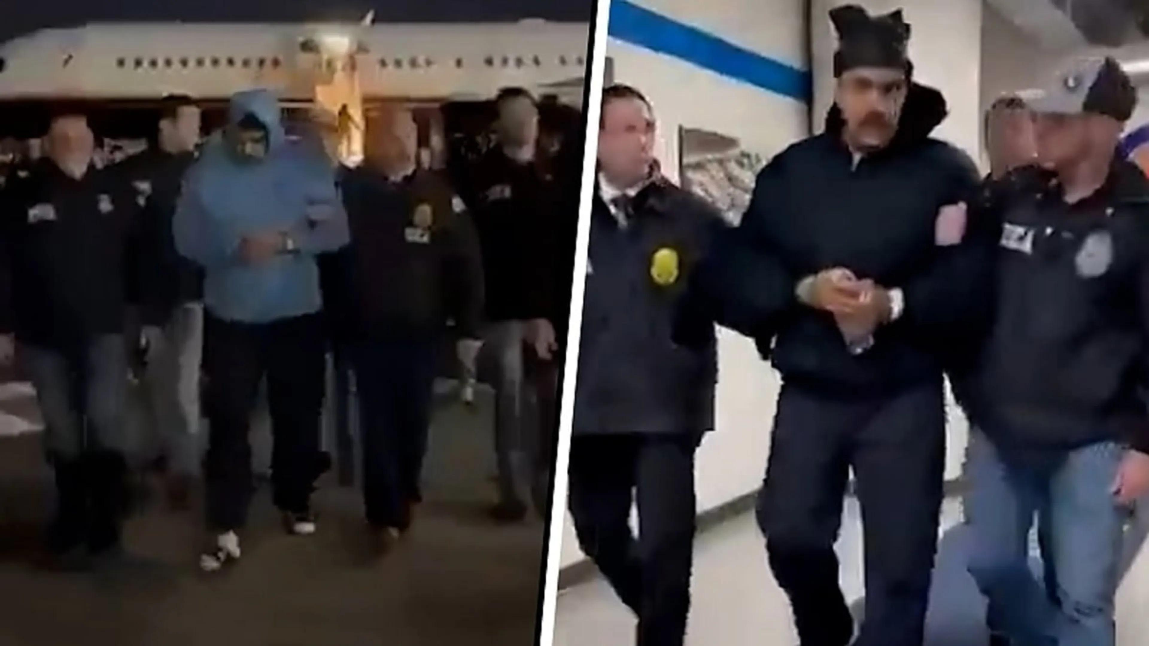 Het Witte Huis plaatste de video op X met de begeleidende tekst “Perp walked”, een term die verwijst naar het publiek tonen van een gearresteerde verdachte.